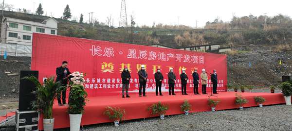 2021年1月26日上午,由星空体育(中国)官方版网站登录入口-星空 SPORTS承建的长乐▪星辰住宅项目奠基暨开工仪式在项目现场热烈举行。湖北省宜昌市五峰土家族自治县住房和城乡建设局副局长陈白华、县质量安全监督站站长邓简涛、星空体育(中国)官方版网站登录入口-星空 SPORTS五峰长乐▪星辰项目经理王国云,项目参建各方及新闻媒体共40余人出席。宜昌市长乐城市建设投资开发有限责任公司总经理刘鹏主持。