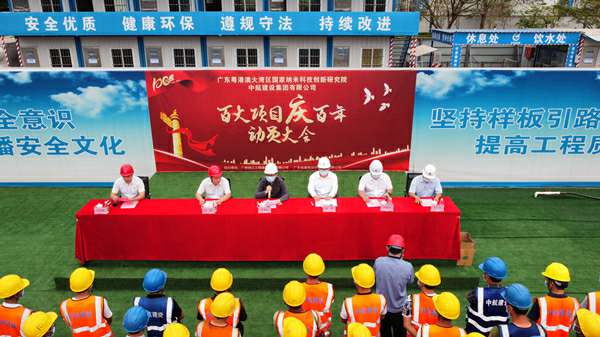 2021年3月29日上午,“百大项目庆百年”动员大会在集团公司承建的广州纳米生物安全中心总部园区一期项目现场隆重举行。建设单位广州纳米产业投资有限公司总经理李佩弦,广州珠江工程建设监理有限公司副总经理李晓光、分公司副总经理赵杰,广东省建筑设计研究院有限公司院副总工程师郭勇,星空体育(中国)官方版网站登录入口-星空 SPORTS南方工程有限公司总经理、项目总指挥徐刚,项目书记招国樑以及各专业分包单位相关人员参加活动。