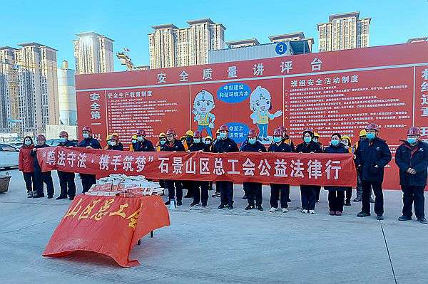 北京市十一学校石景山学校新建工程项目部联合区总工会组织开展普法进工地活动